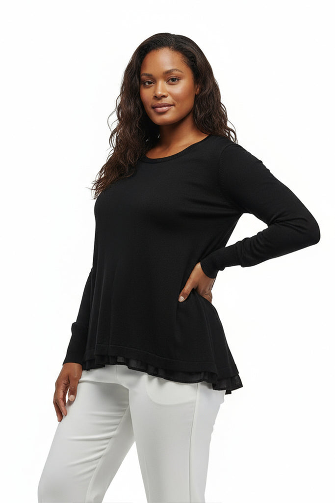 Plus Size La Cera Rounded Neck Sweater Top with Georgette Back