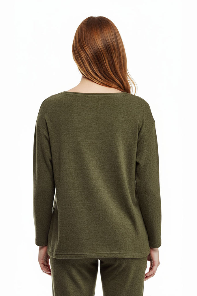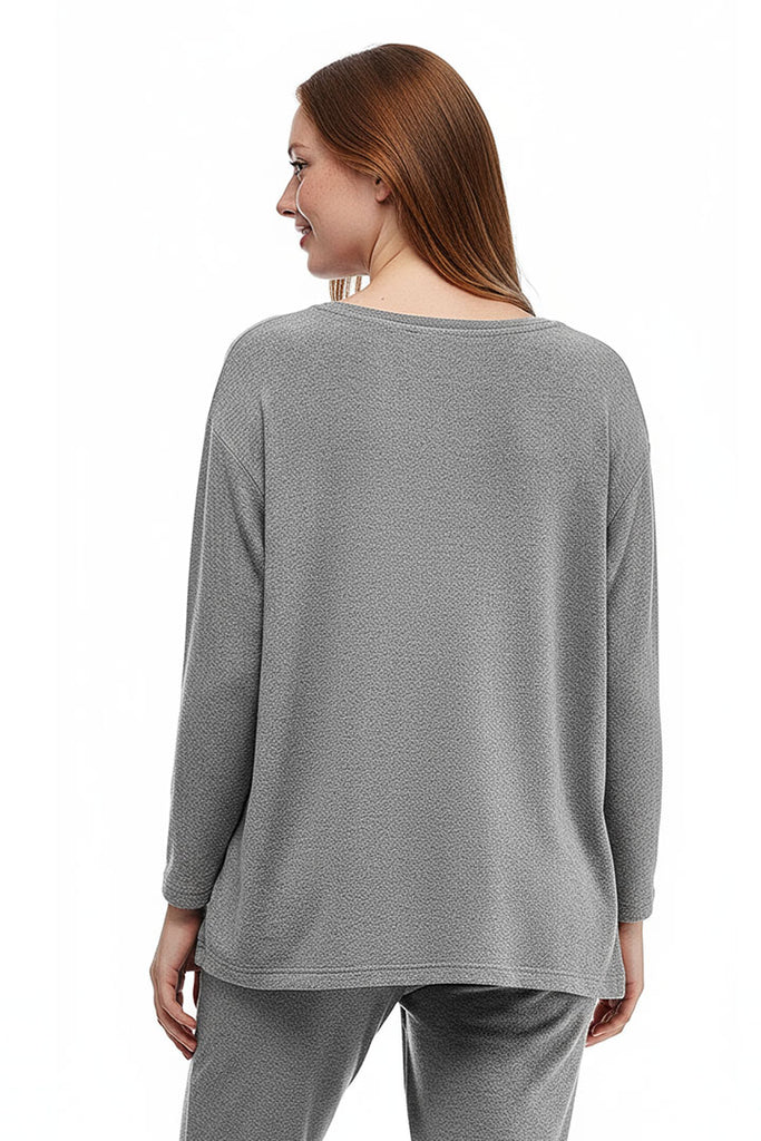 Relájese y respire profundamente en la simplicidad y comodidad de este lujoso jersey jaspeado. Los hombros caídos, el escote redondo y el cuerpo ancho crean un capullo de comodidad. Se añaden bolsillos laterales para mayor comodidad y facilidad. Mide 26,5" desde la parte superior del hombro hasta la parte inferior del dobladillo.