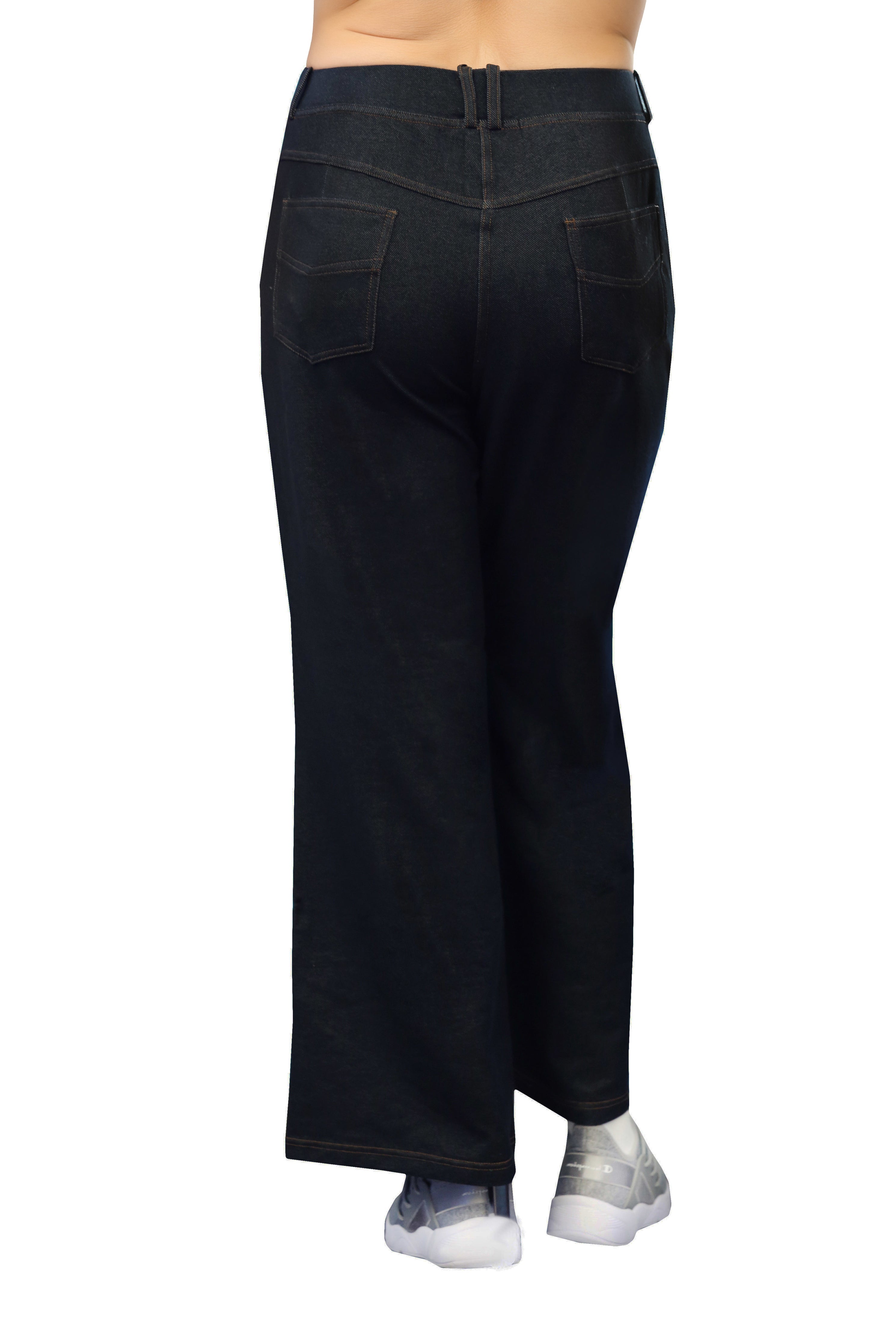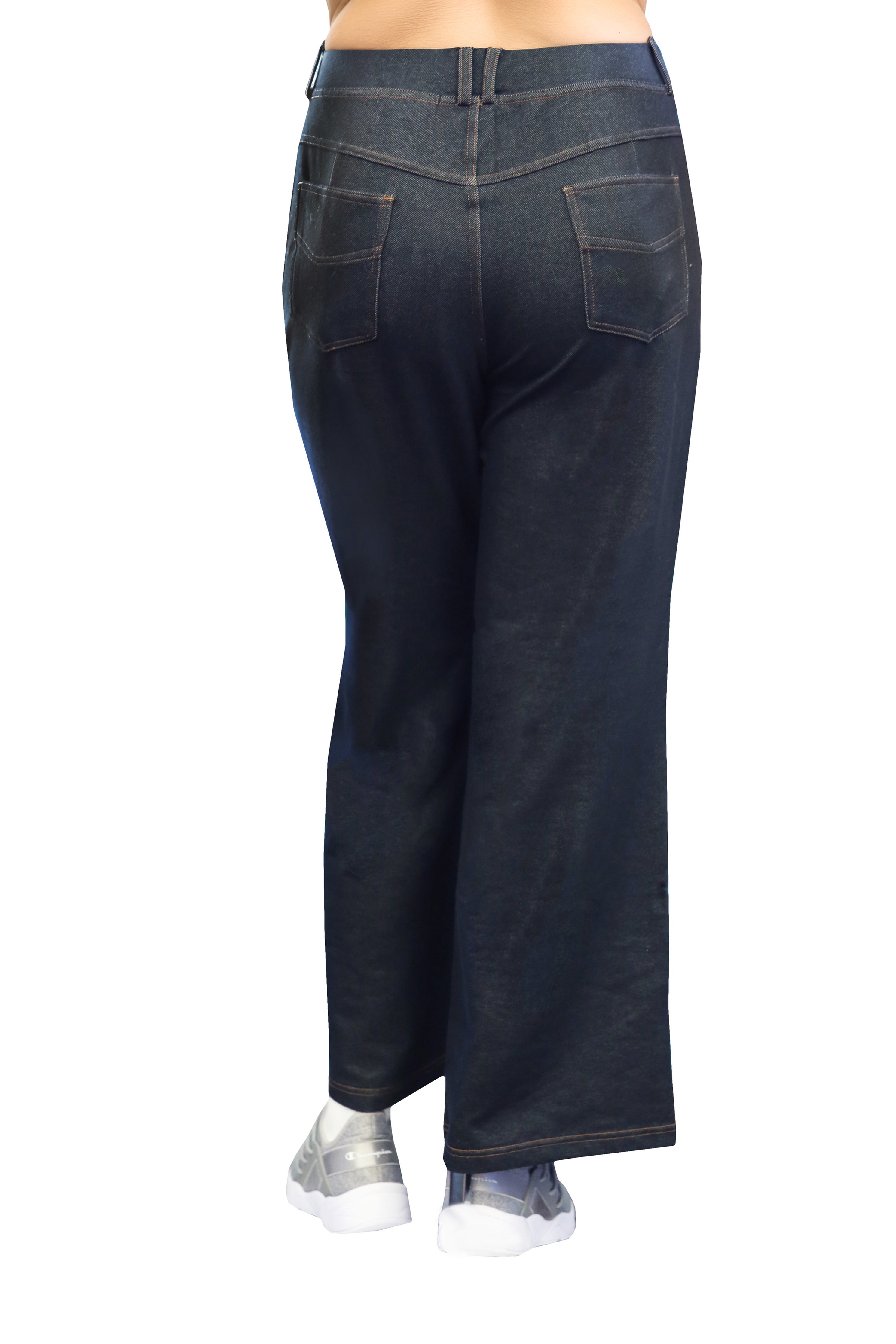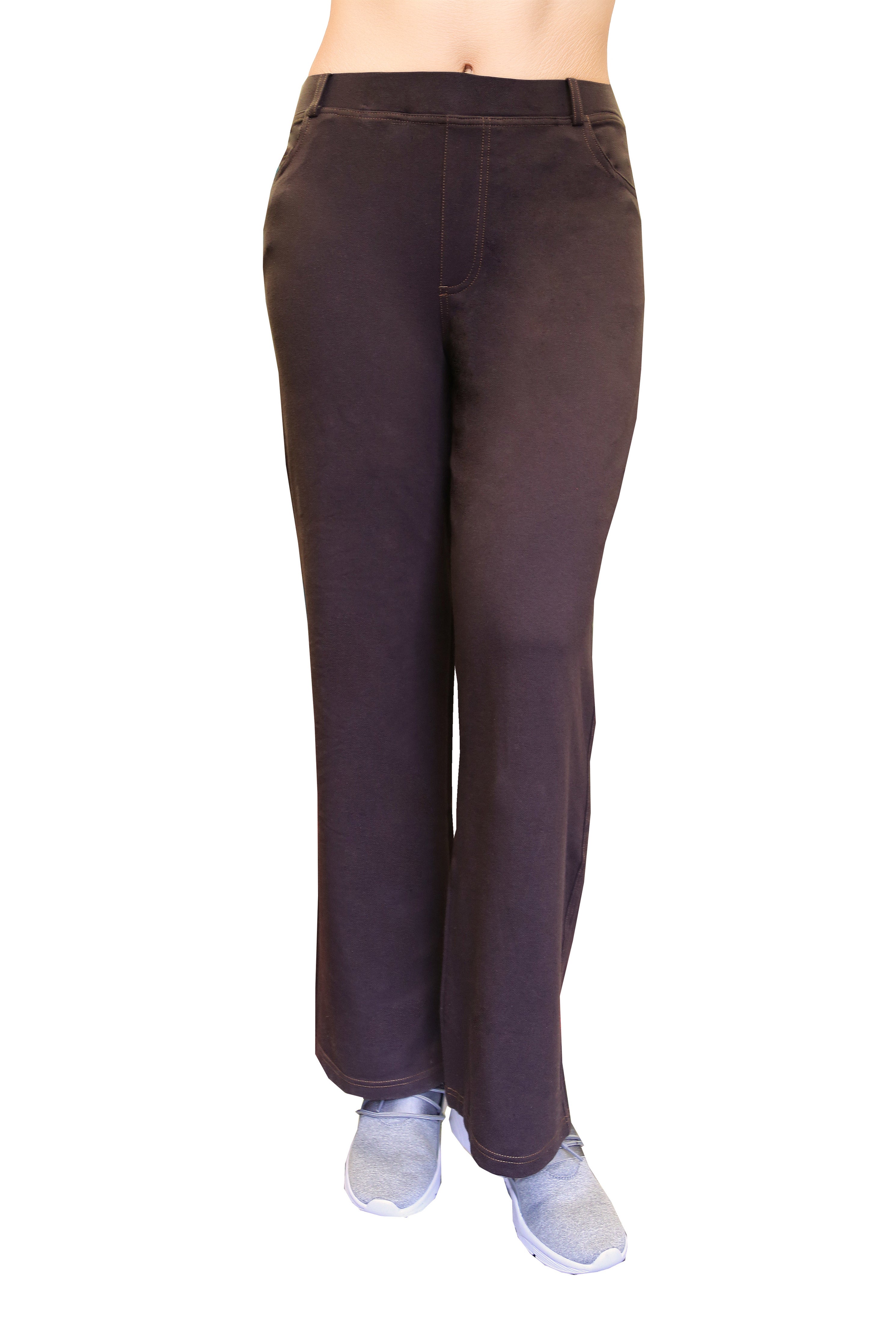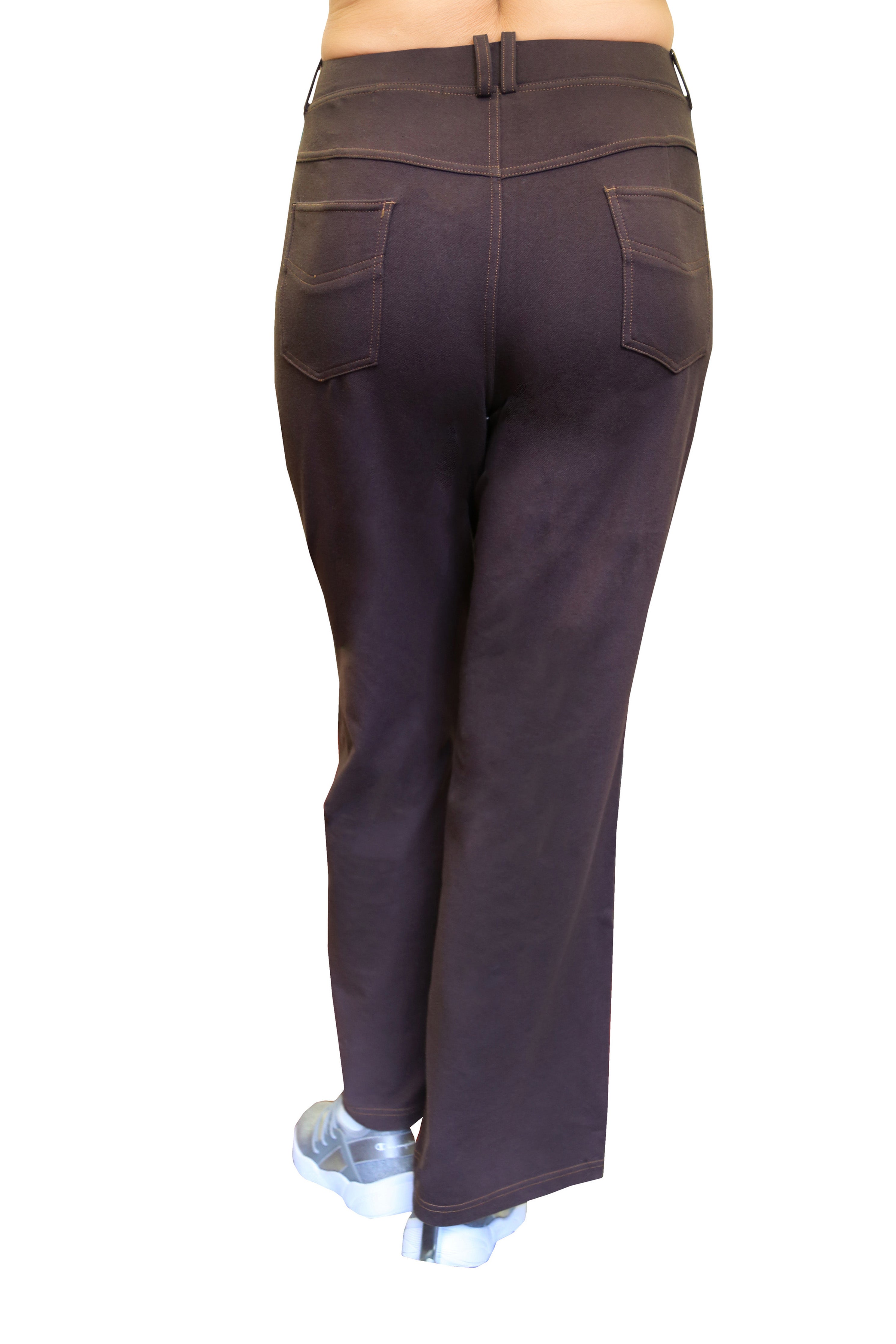 Confeccionado con un tejido elástico increíblemente suave y cómodo, este pantalón tiene la apariencia de mezclilla. Cuenta con una cintura elástica cubierta de 2" con trabillas para cinturón y un práctico estilo de 5 bolsillos con bragueta simulada y costuras en contraste.