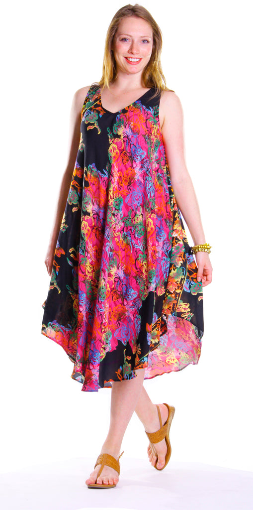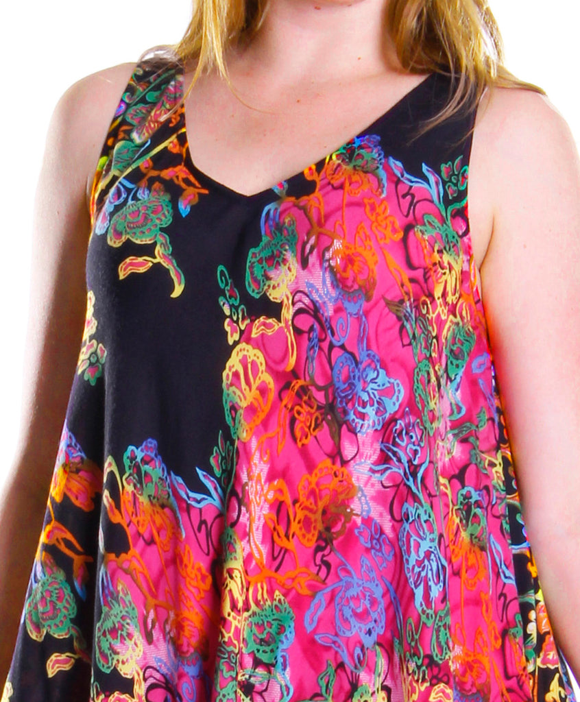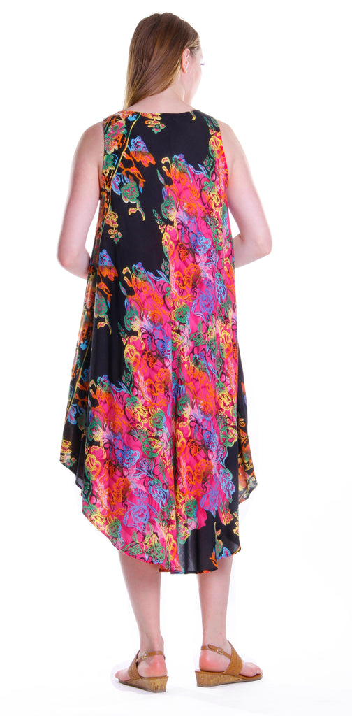 Obtenga lo mejor de la comodidad y el estilo con este atrevido vestido pañuelo sin mangas con estampado floral de La Cera.