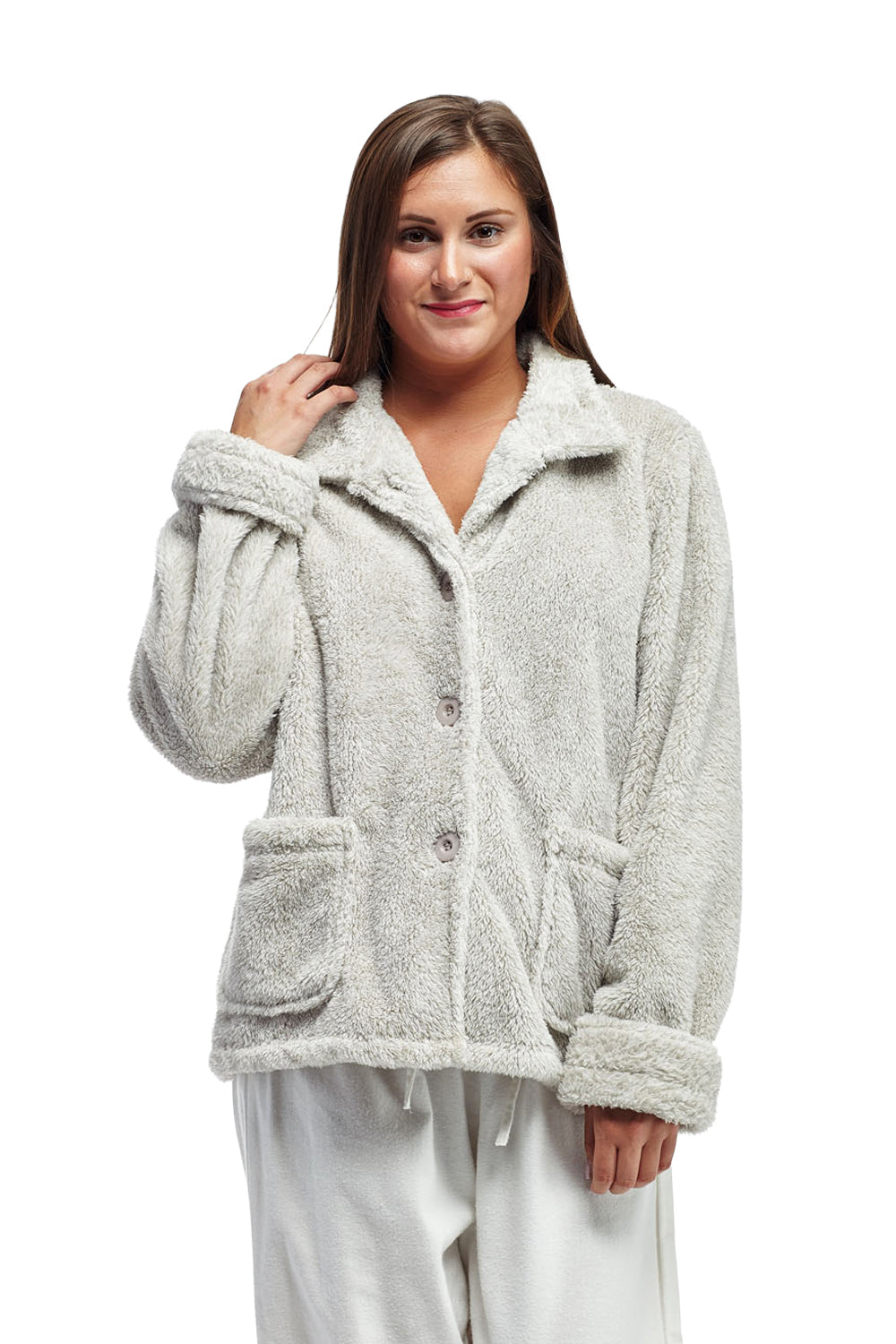 Suave y lujosa, esta chaqueta polar con botones de La Cera presenta cuello con muescas, mangas largas y dos bolsillos delanteros.