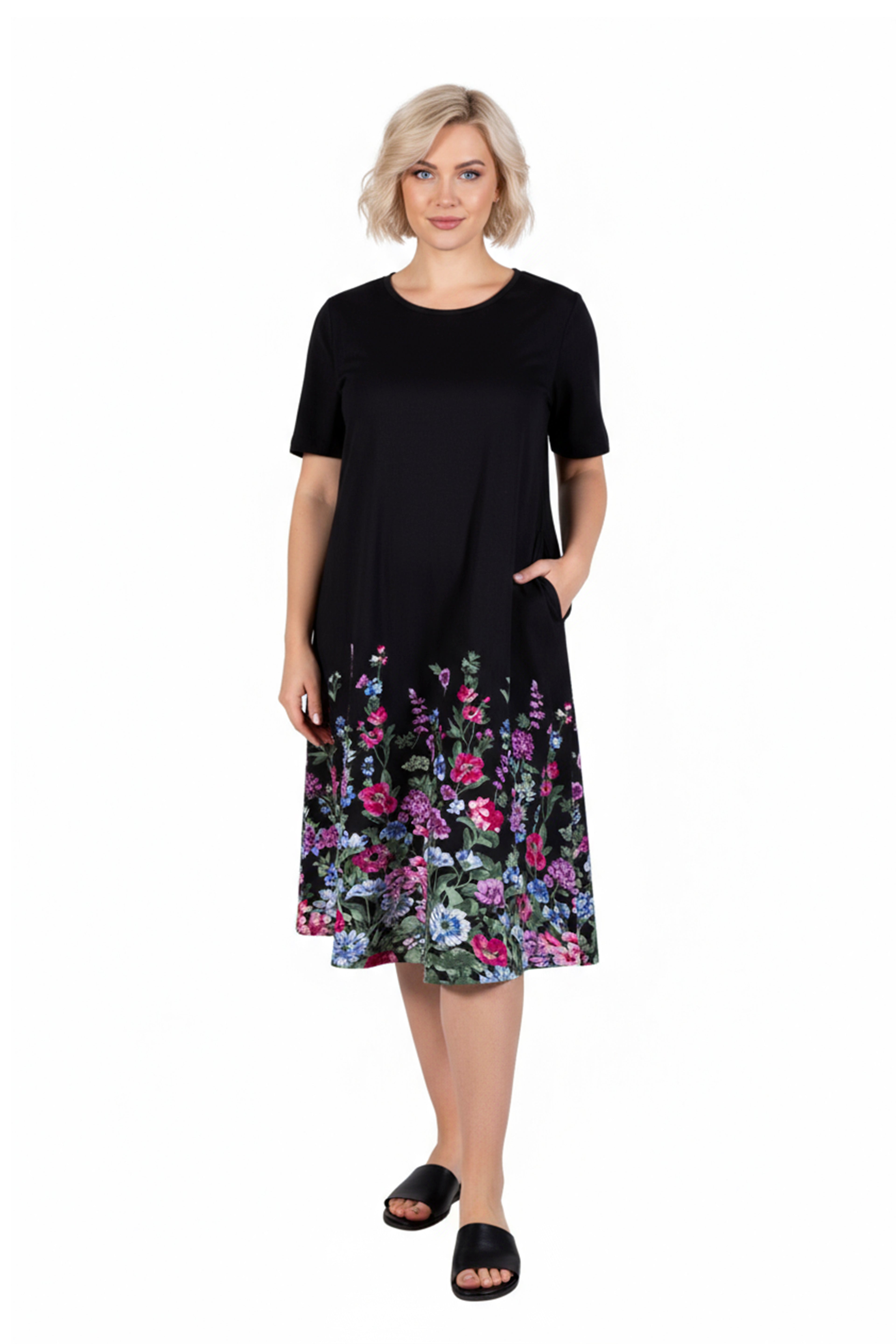 This La Cera 100% Cotton Knit Summertime Garden Dress is perfect for summertime adventures. The lightweight and breathable 100% cotton knit jersey fabric provides comfort and the A-line silhouette flatters all body types. With a beautiful floral print and convenient side seam pockets, this dress is perfect for travel. Simply roll it up and go! Imported.