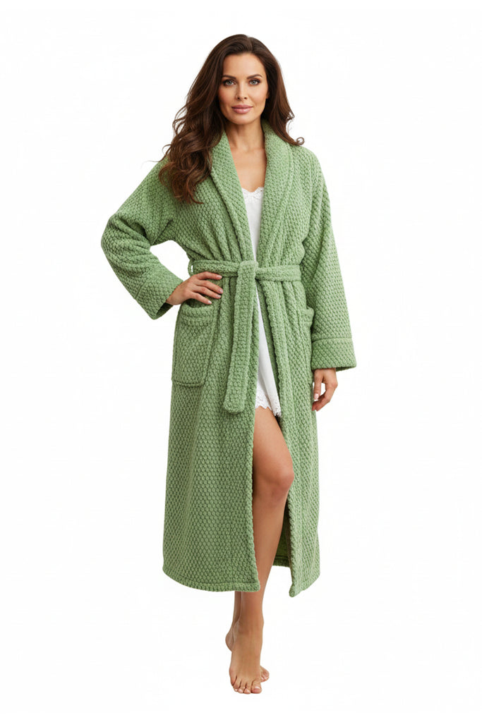 La Cera Honeycomb Textured Fleece Wrap Robe