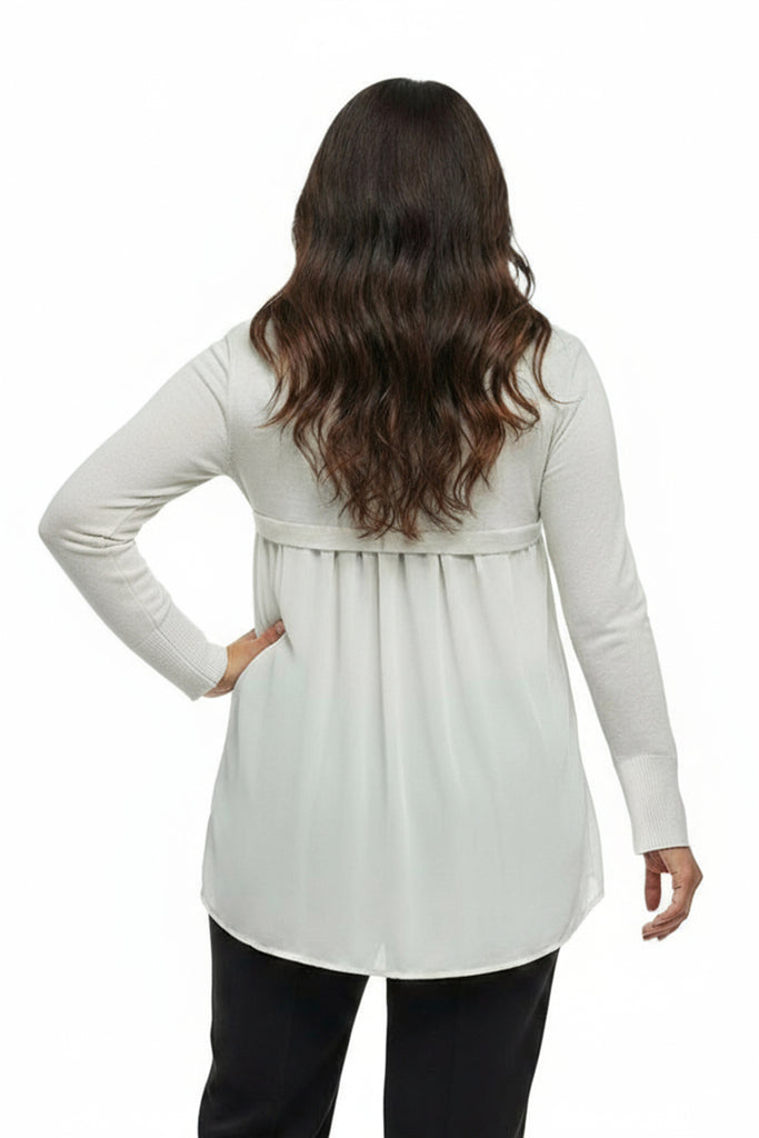Top tipo suéter con cuello redondo y espalda de georgette La Cera talla grande