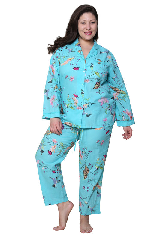 You will love this two-piece cotton pajama set from La Cera. The 5 button-front top of this set features a notched collar with rounded corners on lapel and a pocket on the top left side with a floral embroidered detail, while the pants feature an elastic waistband and easy pull-on styling.
