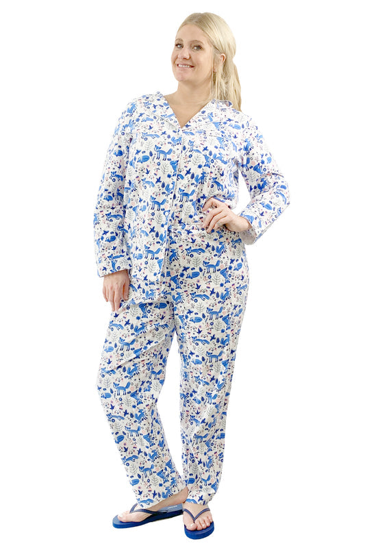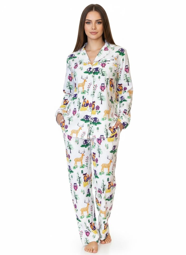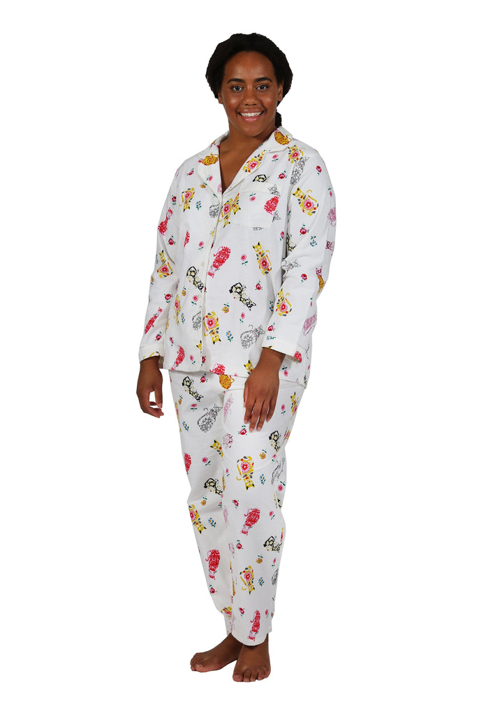 La Cera Long Sleeve Printed Flannel Pajama Set