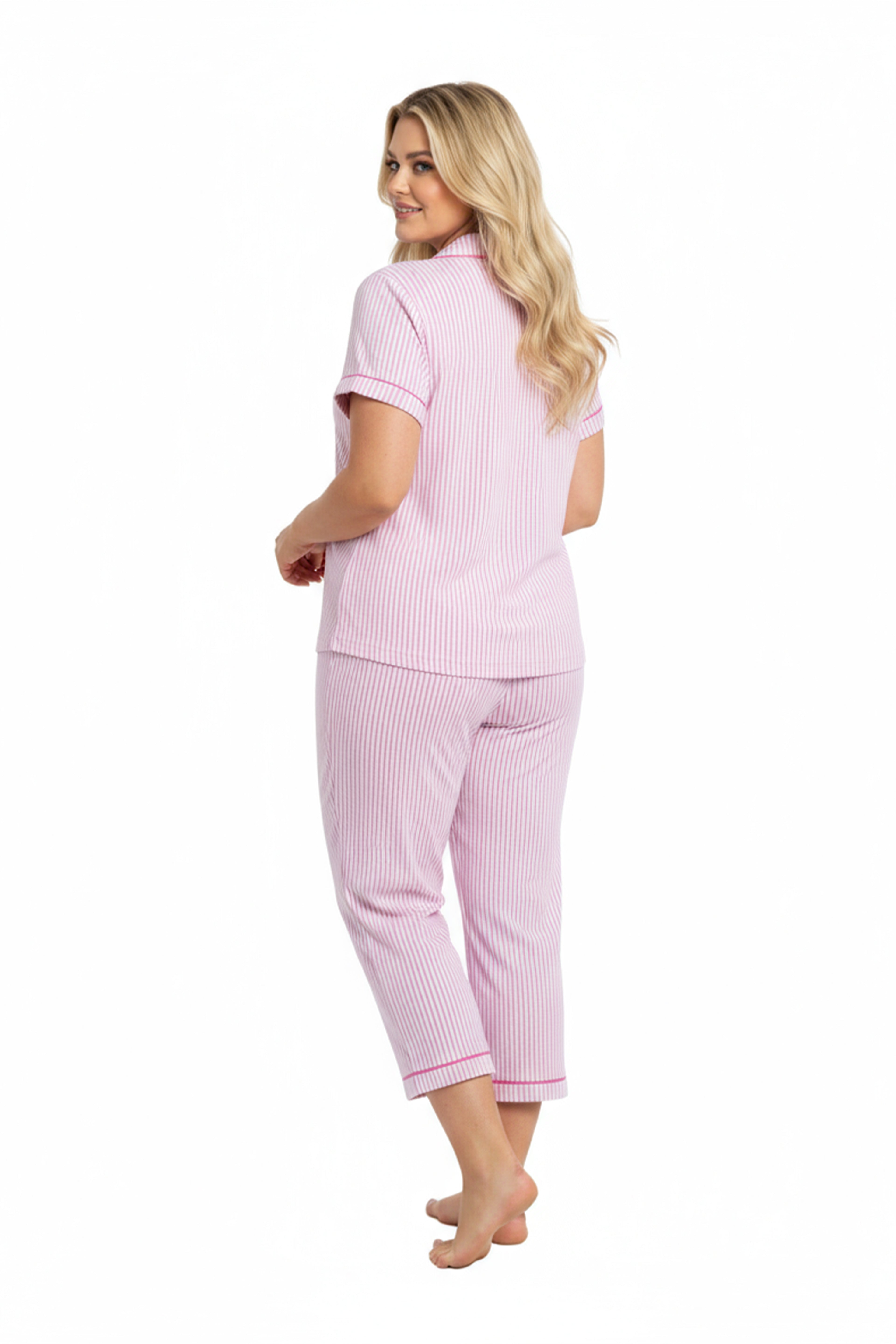 La Cera Plus Size Pin Stripe Cotton Knit Capri PJ