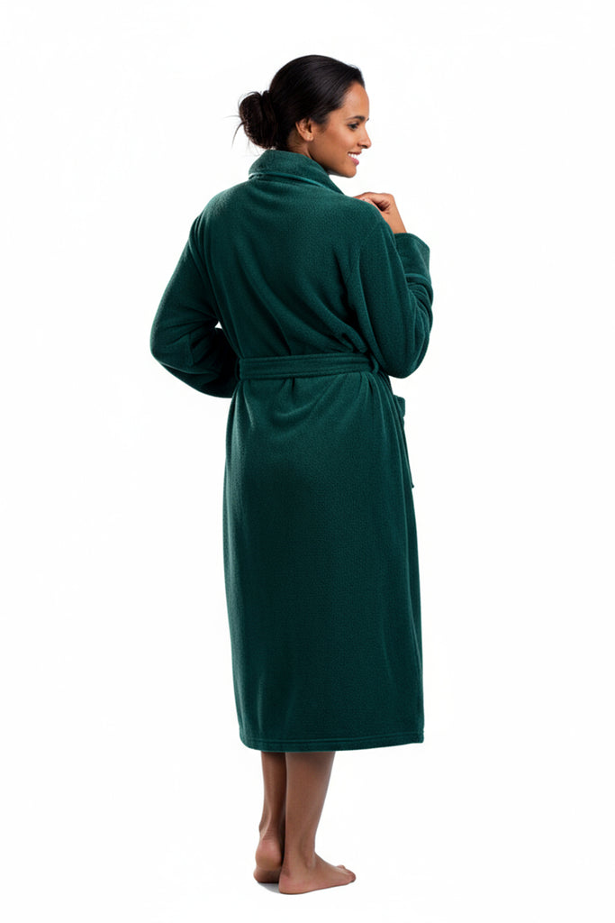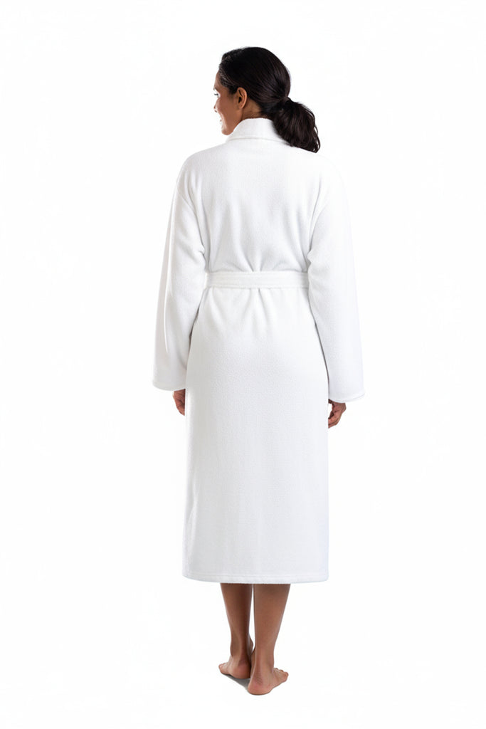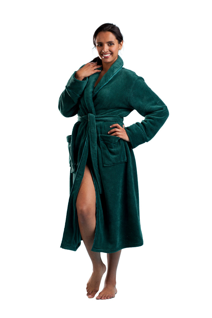 Soft and luxurious, this spa robe from La Cera is made of the silkiest plush fabric we could find. With two front patch pockets and a self-tie belt, this robe is finished with a shawl collar. An inside tie is also included.