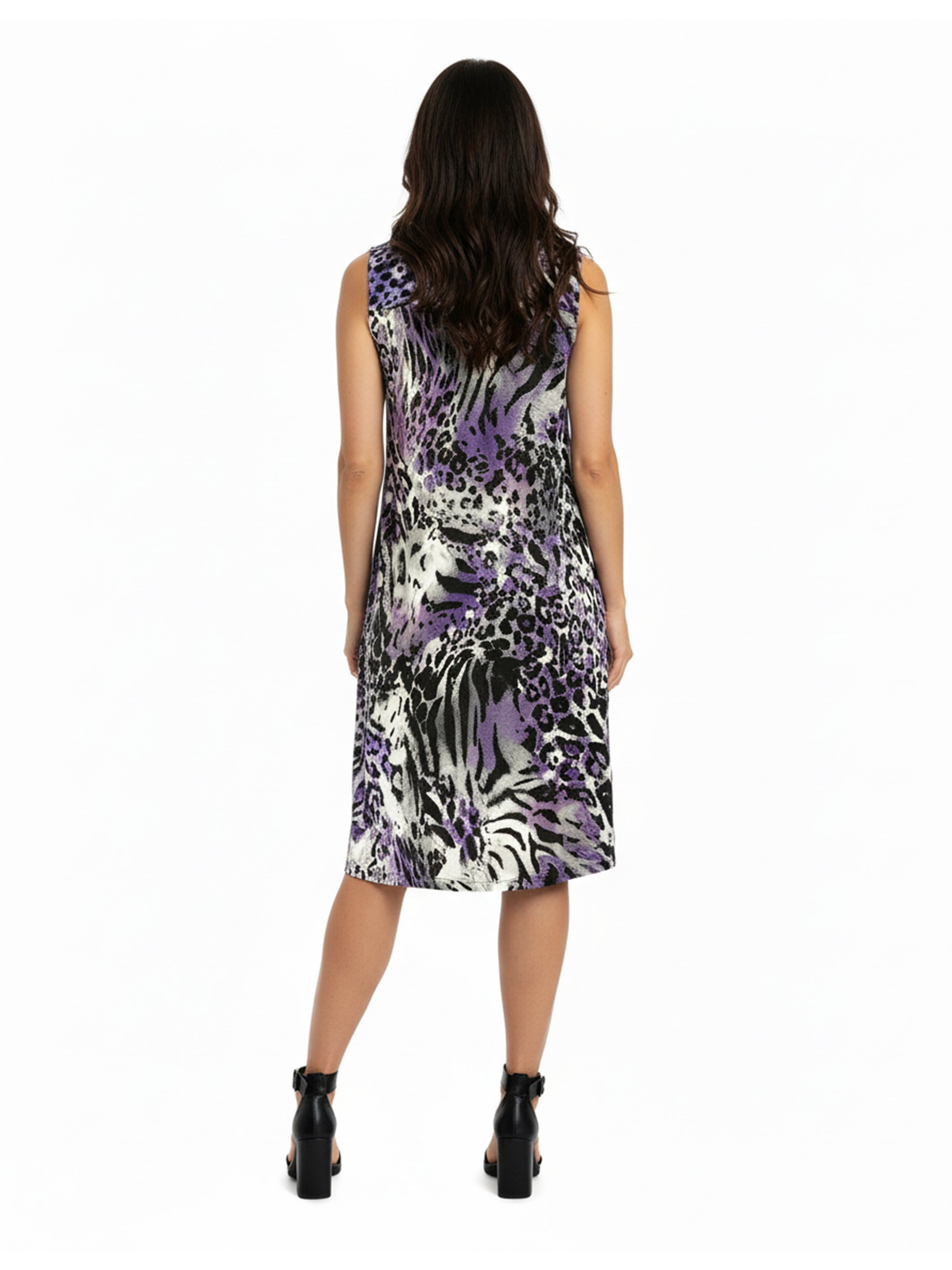 Pleat Front Sleeveless Purple Cheetah Print Dress