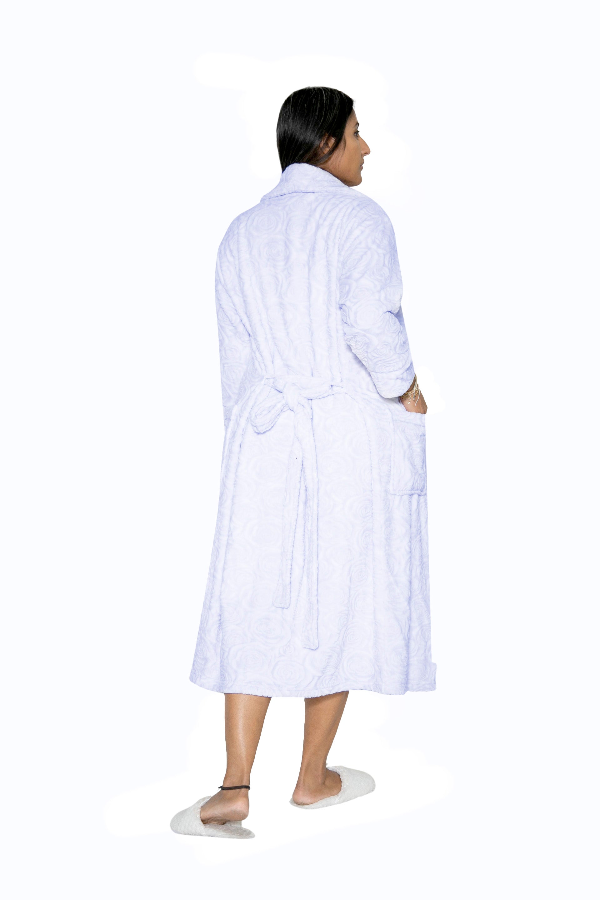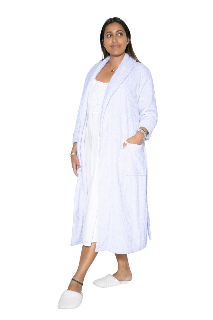Embrace effortless elegance with this plus-size rose print wrap robe, designed for those who appreciate refined comfort. The delicate sheered Minky fabric drapes beautifully while maintaining a soft, cozy feel against your skin. Perfect for leisurely mornings or unwinding evenings, this versatile piece transitions seamlessly from bedroom to living space. The practical machine-washable construction ensures easy care without compromising quality. A timeless addition to any wardrobe that celebrates both style and comfort.
